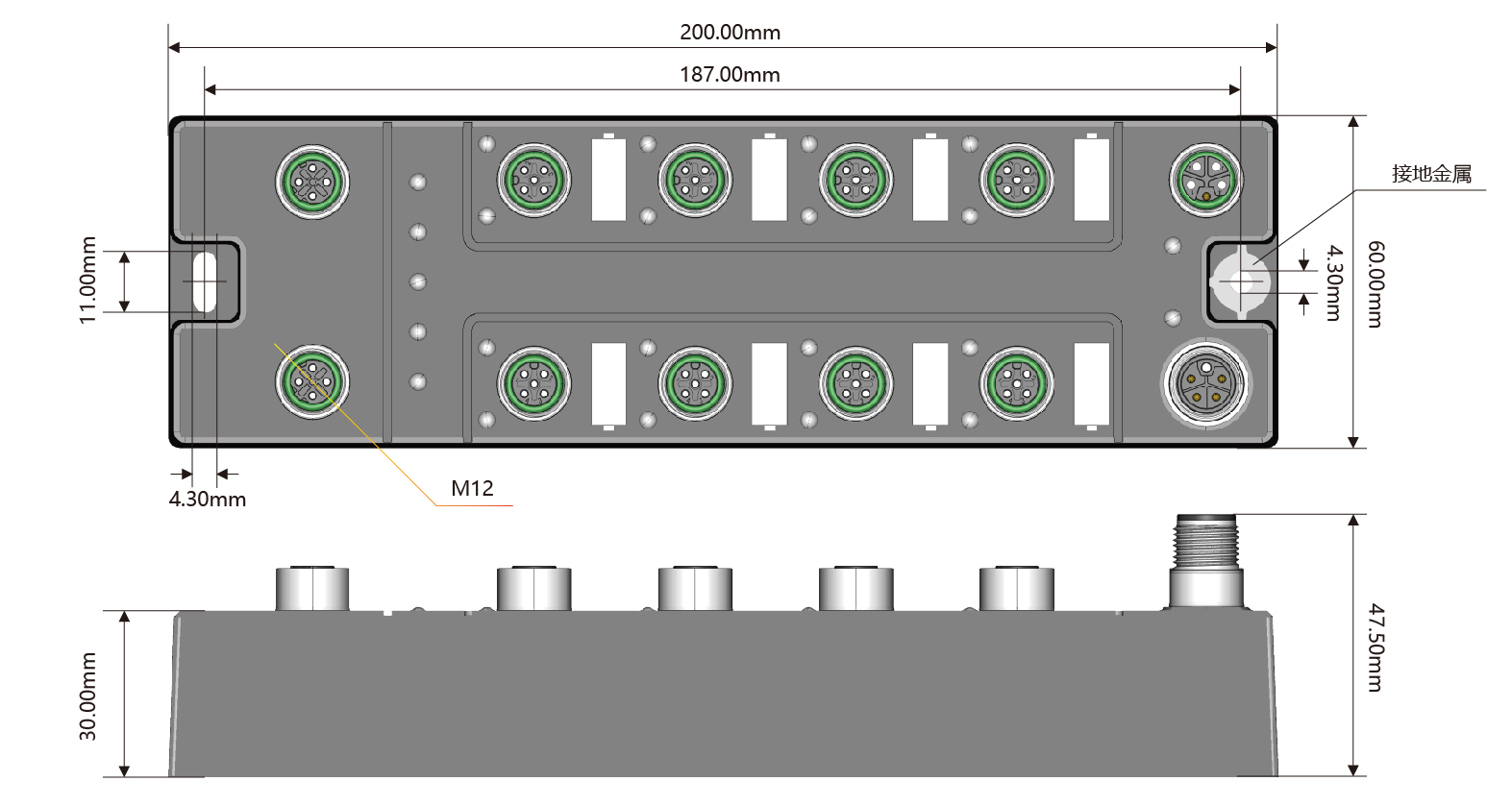 電源接口:Power In:1×M12,L-Code,4P針;Power Out:1×M12,L-Code,4P孔